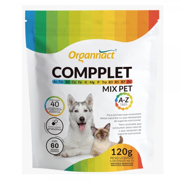 Proporcionando mais qualidade de vida para o seu melhor amigo, o Suplemento Vitamínico Organnact Compplet Mix Pet A-Z é recomendado em qualquer fase da vida, com o objetivo de complementar a nutrição diária para pets que consomem dietas naturais ou necessitam de suporte nutricional.